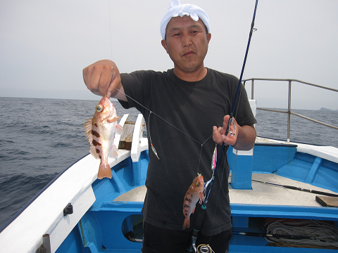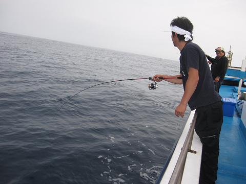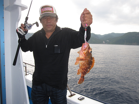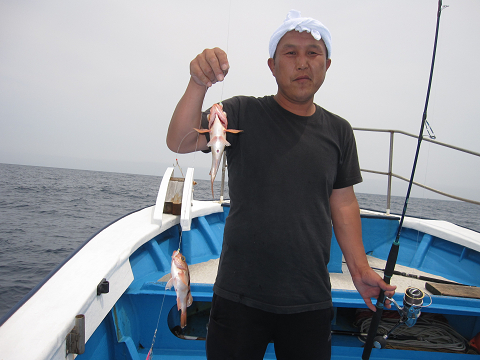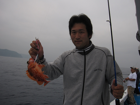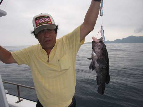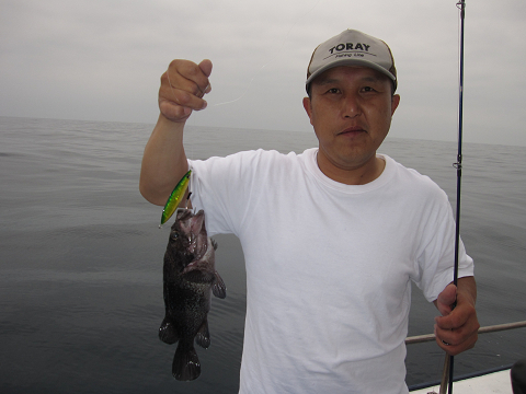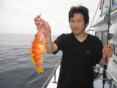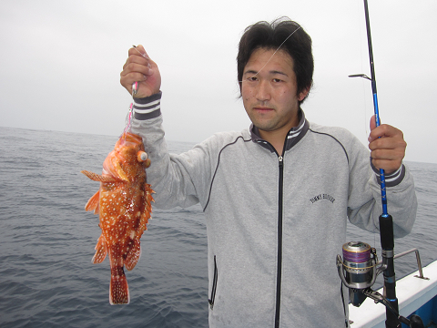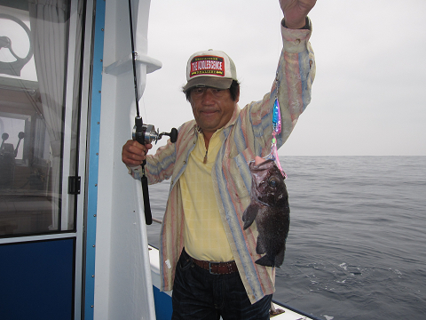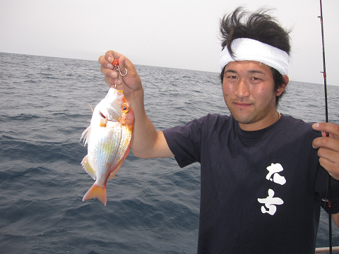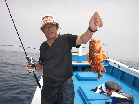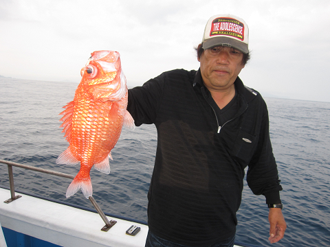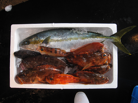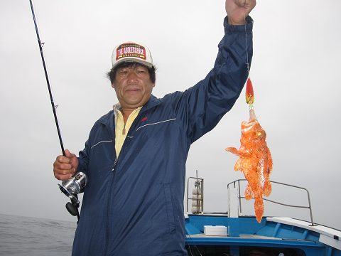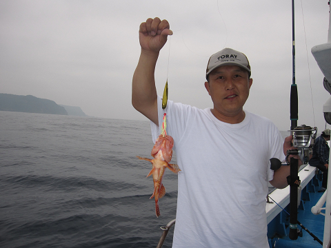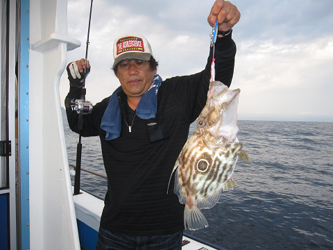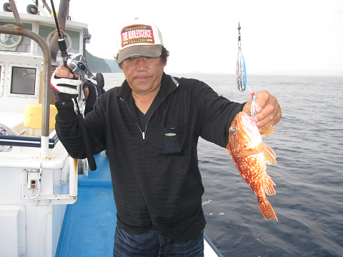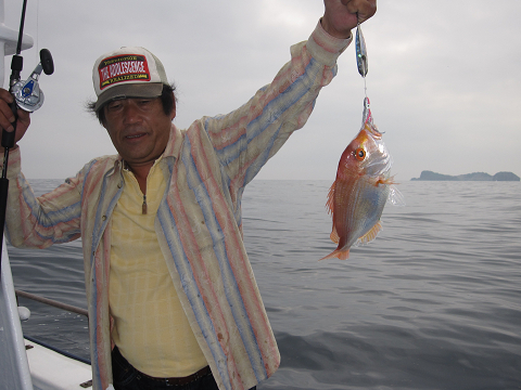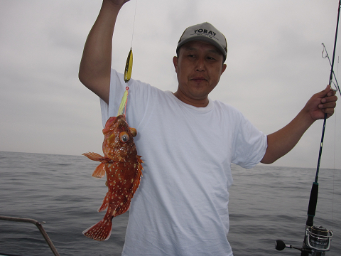 早朝、水深80〜60mラインから攻めてみますが、青物・ヒラマサもヒットするだけに気が抜けない!一発目にヒットしたのはマルゴ、続いてガシラ、キツネメバル、キンメなどと続きます♪