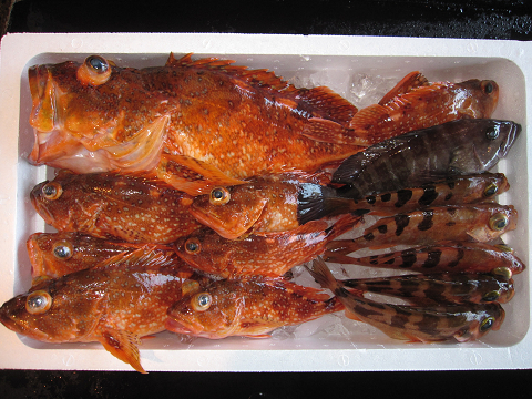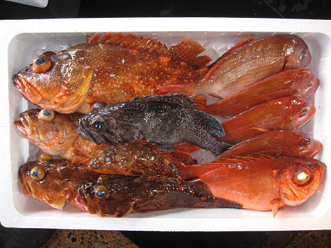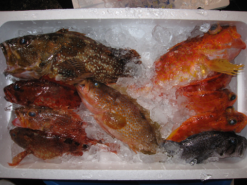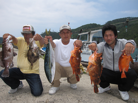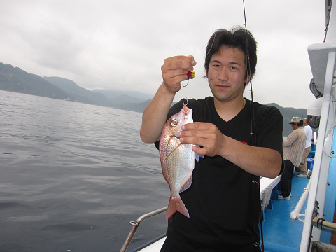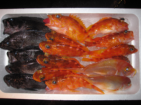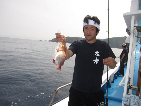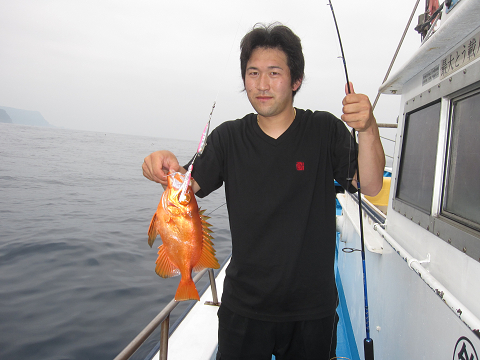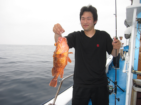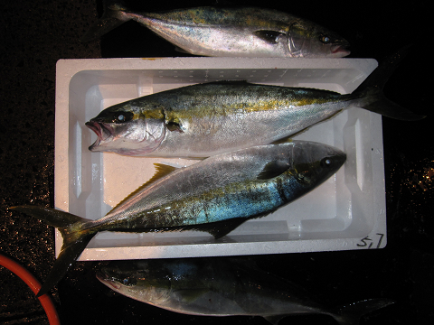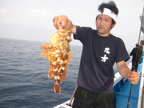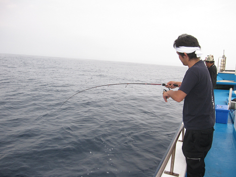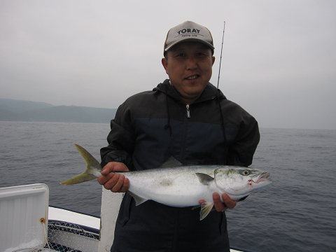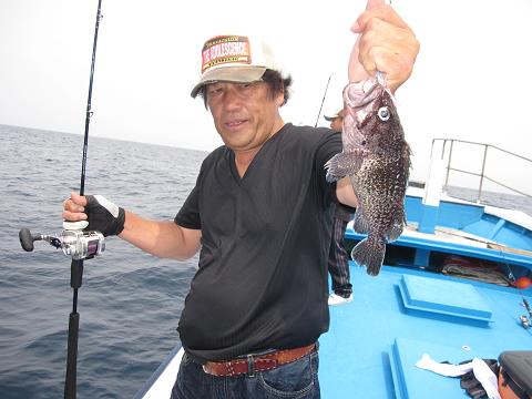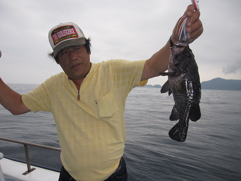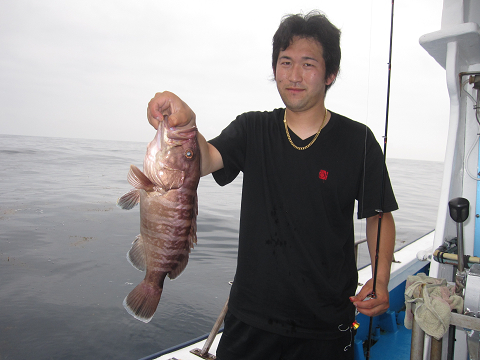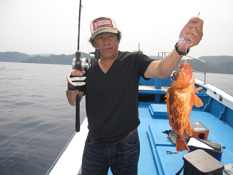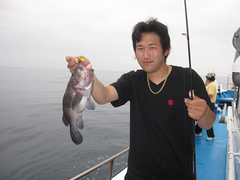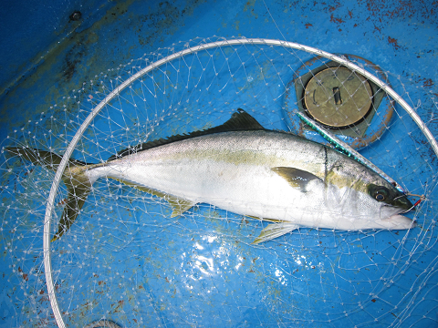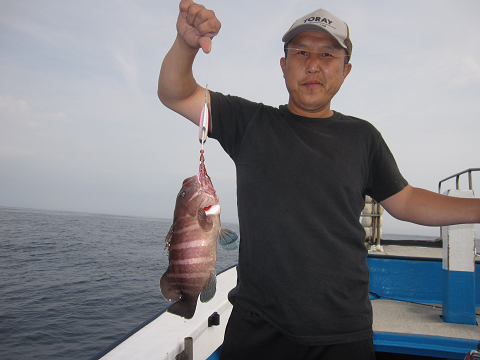 早朝、水深80〜60mラインから攻めてみますが、青物・ヒラマサもヒットするだけに気が抜けない!一発目にヒットしたのはマルゴ、続いてガシラ、キツネメバル、キンメなどと続きます♪