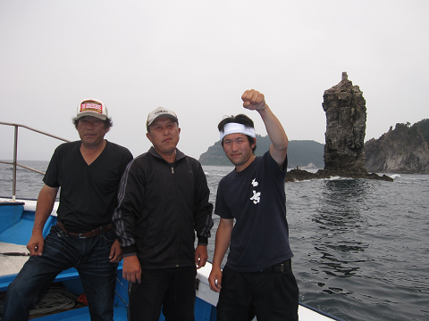 「しかし船長、この大ウネリはいつもこんなんですか〜?」「いえいえ昨日からこの3m級の大ウネリが入って相変わらずこの調子ですよ!予報は変わらず1mなんですけどね!」(笑)