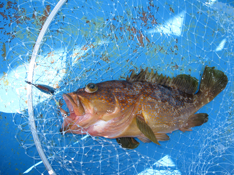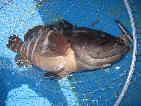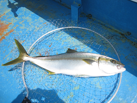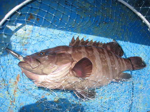 アタリも途絶えた頃、少し沖へ出て新場を叩くといきなりからヒットするも相手がデカ過ぎた!一度止まっても巻こうとするとズリズリと引き出されるばかりでとうとう針外れ…そのまま落とし込み早巻で誘うとまた食った♪しかもさっきとまったく同じ引き!今度こそはと勝負するもやっぱり強い…ドラグテンションもいっぱいいっぱい!強気で勝負に出ても絶対切られる重量感でリールが巻けない…ズリズリズリズリ引き出されるラインが無くなりかけ船で追っかけながらやりとりすること20分でしたが、とうとうテンションを失ってしまいました。