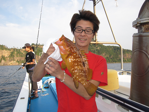 2日目の朝一番、開始早々からジャンボアコウでスタート!「うわ〜!でっか〜〜〜っ♪」喜んでいると、連れの方にも良型がヒットしている!「すげ〜!やばいっす〜〜〜♪」その後もマハタ・メバル・ガシラと釣りクーラーも埋まってきた頃、一か八か青物・真鯛狙いで沖へ出て見たいとの事、「沖にはすでに真っ黒な雲が迫っているのだが…」まぁ〜いい、出来るまでやってみますか!鳥山・1級ポイントと数カ所攻めてみましたがやはり反応無し!これだけ大量のイワシがあちこちに居れば群も散ってれば、居ってもわざわざルアー(疑似餌)を食わなくても魚の周りには餌だらけ!餌に飢えてない現状であろう。