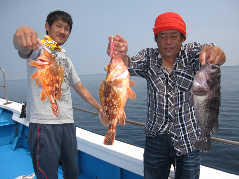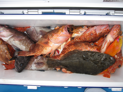 悪潮続きでか!?食いが悪い最近の根魚ではありますが、本日は早朝開始すると上潮だけ逆潮ながら良型キンメが連発で幸先良いスタート!アコウなど追加していると上から下まで完全に潮が止まってしまいました…その分食いは落ちましたが、今日の状況にしてはよく釣ったと思います。