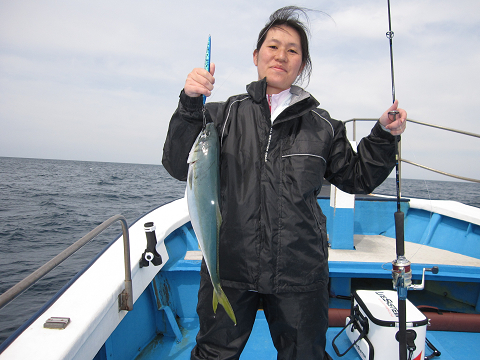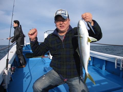 沖へ出てジギングで狙ってみますが、今日はハマチ!ハマチ!