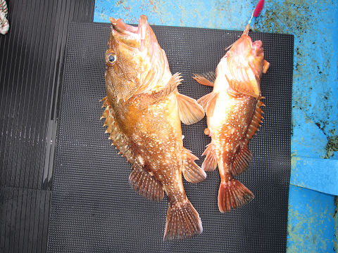 主要ポイントを探って良型カサゴなど数匹ゲットしますが、本来の食いとはほど遠い状況。