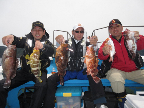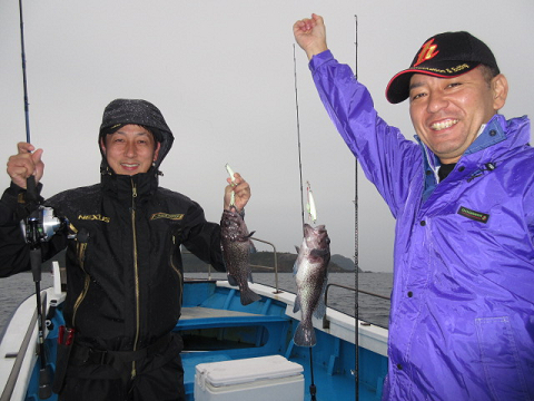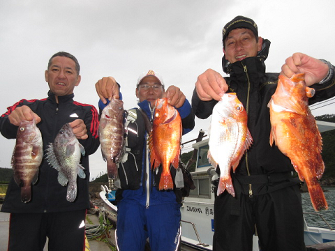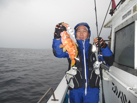 午後から出て見るとさらに渋々!大本命チカメキントキは時折ヒットに持ち込みますがバレます!それでもそれぞれ美味しい根魚を釣り上げ、夕方北寄りの風が吹き寒さを増したところで切り上げました。