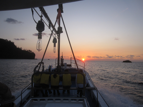 夕日は確実に見れないながらも景色だけでも!っと集まったメンバーで何とか持ちこたえた空の下、出航となりました。