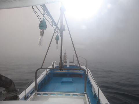 早朝の渡船時には20m先が見えない状態で、スロー航行!