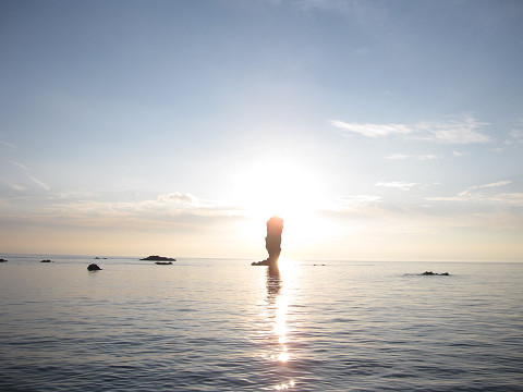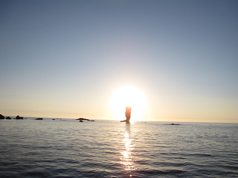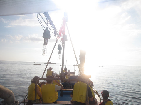 もともと、曇空の天気予報の本日でしたが、雲は多いながら晴れ間となり、「船で出れただけでもいいですよ〜!」と、夕日が見れないのは覚悟の上で来られたメンバーでしたが、雲の隙間から夕日が何度か見れる場面もあって大喜び♪