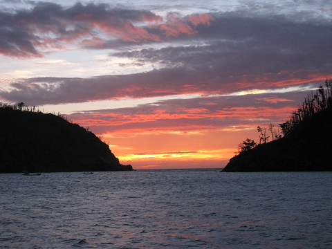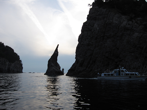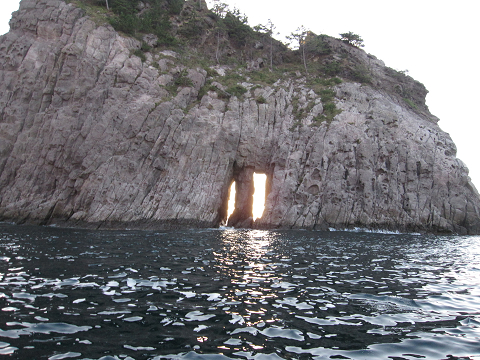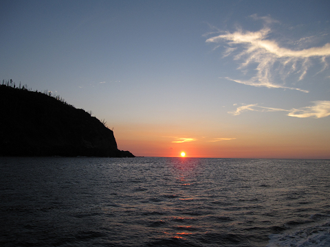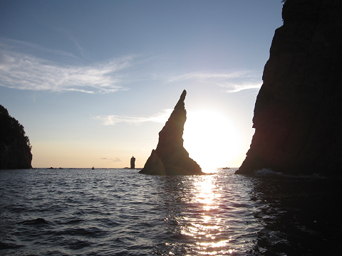 すぐに厚い雲に隠れてしまいますが、鉄砲岩など景色を見ていただいてるうちに、低く落ちて来た夕日が厚い雲の下、オレンジがかって顔を出してくれました!