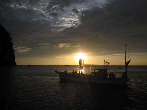 陽が沈む前、最後の夕日が顔を出せば、「すっげ〜!最高!バッチリです!」