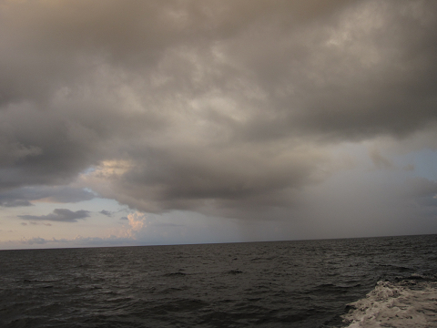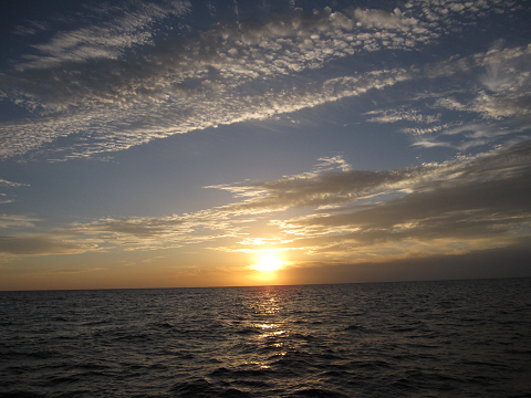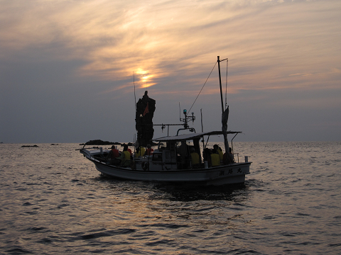 出船してみると厚い雲ながら上層の雲の動きは早く、雲と雲の切れ間から夕日は見れそうです!