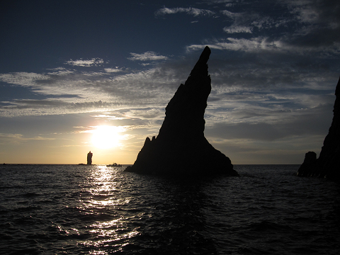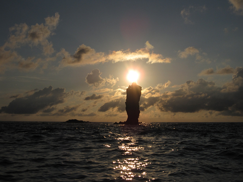 早めにローソク島へ到着し雲が過ぎ去るのを待ち構えクリアーな夕日が顔を出すとしきりに鳴るシャッター音♪