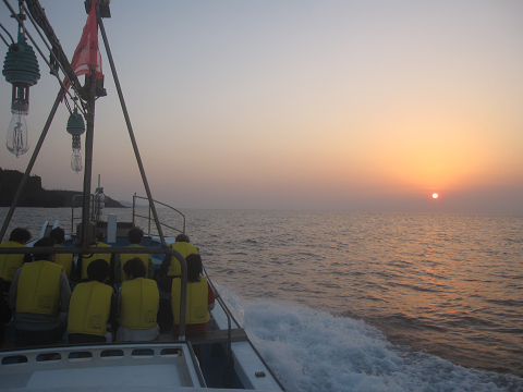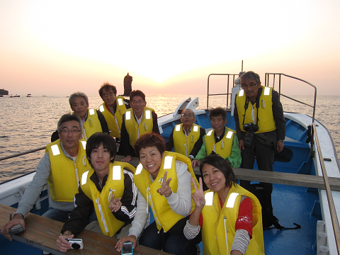 「凪で夕日が出ていてこの三日間であること!」三拍子揃わないと見る事が出来ない、まさに奇跡の光景に感激の皆さんでした!