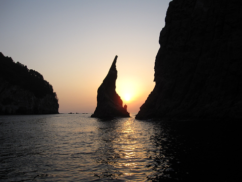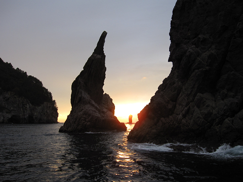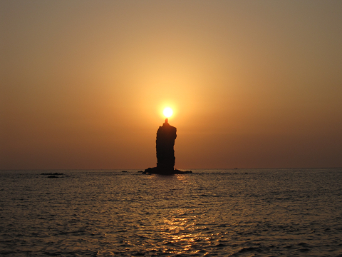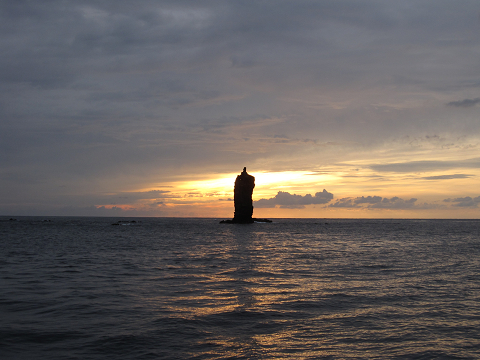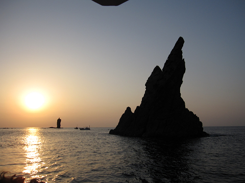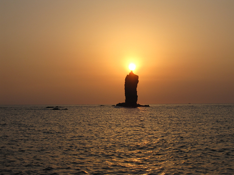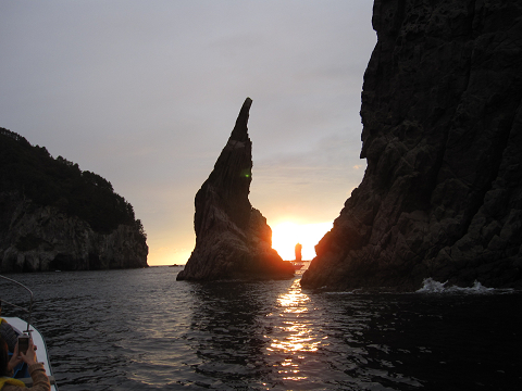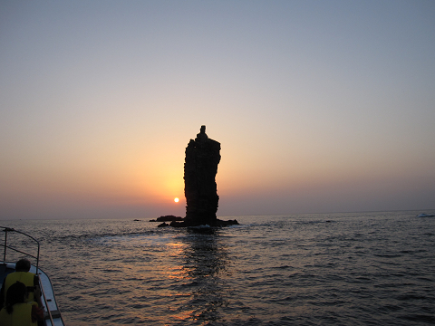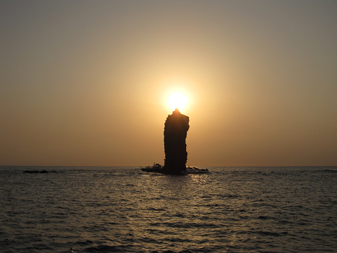 しかも年間でもわずか三日しか無い冠島と馬背島との水道から見るローソク島に夕日が合うタイミングが本日!!