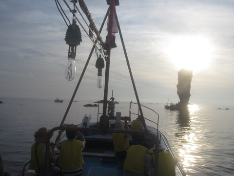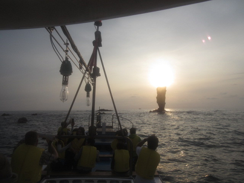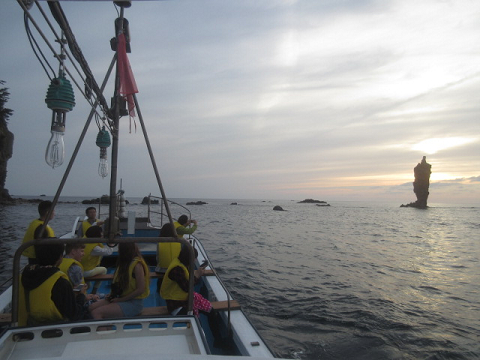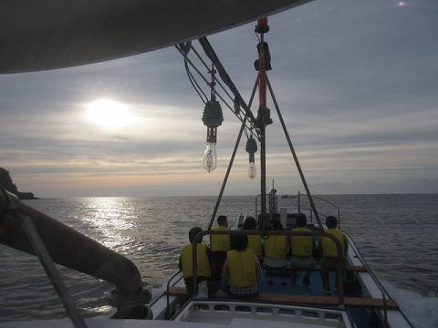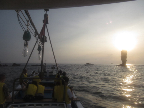 日中から出船時まで生憎の曇り空でしたが、奇跡的に遊覧時だけ綺麗に晴れ見事な夕日が灯りました!しかも他船は2隻のみで最後までじっくりと堪能♪